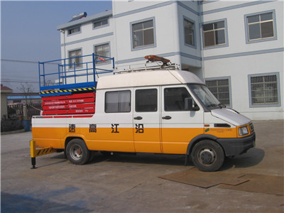 电瓶车载式液压升降台 套是由升降台和电瓶车 配改装而成的高空作业专用设备。它利用电瓶车原有直流动力,勿须外接电源,即可实现升降台的升降和整机的移动。它移动方便,作业流动范围广,适用于作业范围大,流动性强的 各行高空作业。